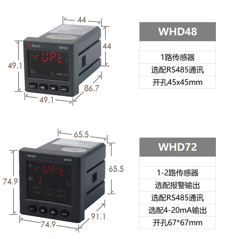 安科瑞零碳园区系统中高压开关柜内温湿度控制器产品主要用于中高压开关柜、端子箱、环网柜、箱变等设备内部温度和湿度的调节控制。可有效防止因低温、高温造成的设备故障以及受潮或结露引起的爬电、闪络事故的发生。产品分为:WH普通型系列、WHD智能型系列。