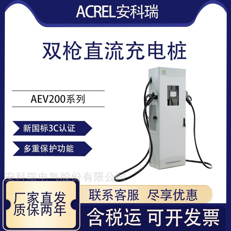 安科瑞AEV200-60/120/160KW双枪直流快充大功率商用充电桩为广大用户提供慢充和快充两种充电方式,便携式、壁挂式、落地式等多种类型的充电桩,包含智能7kw交流充电桩,30kw直流充电桩,60kw/80kw/120kw/180kw直流一体式充电桩来满足新能源汽车行业快速、经济、智能运营管理的市场需求。实现对动力电池快速、安全、合理的电量补给,同时为提高公共充电桩的效率和实用性,具有有智能监测:充电桩智能控制器对充电桩具备测量、控制与保护的功能;智能计量:输出配置智能电能表,进行充电计量,具备完善的通信功能;云平台:具备连接云平台的功能,可以实现实时监控,财务报表分析等等;远程升级:具备完善的通讯功能,可远程对设备软件进行升级;保护功能:具备防雷保护、过载保护、短路保护,漏电保护和接地保护等功能;适配车型:满足国标充电接口,适配所有符合国标的电动汽车,适应不同车型的不同功率。下面是具体产品的型号和技术参数。