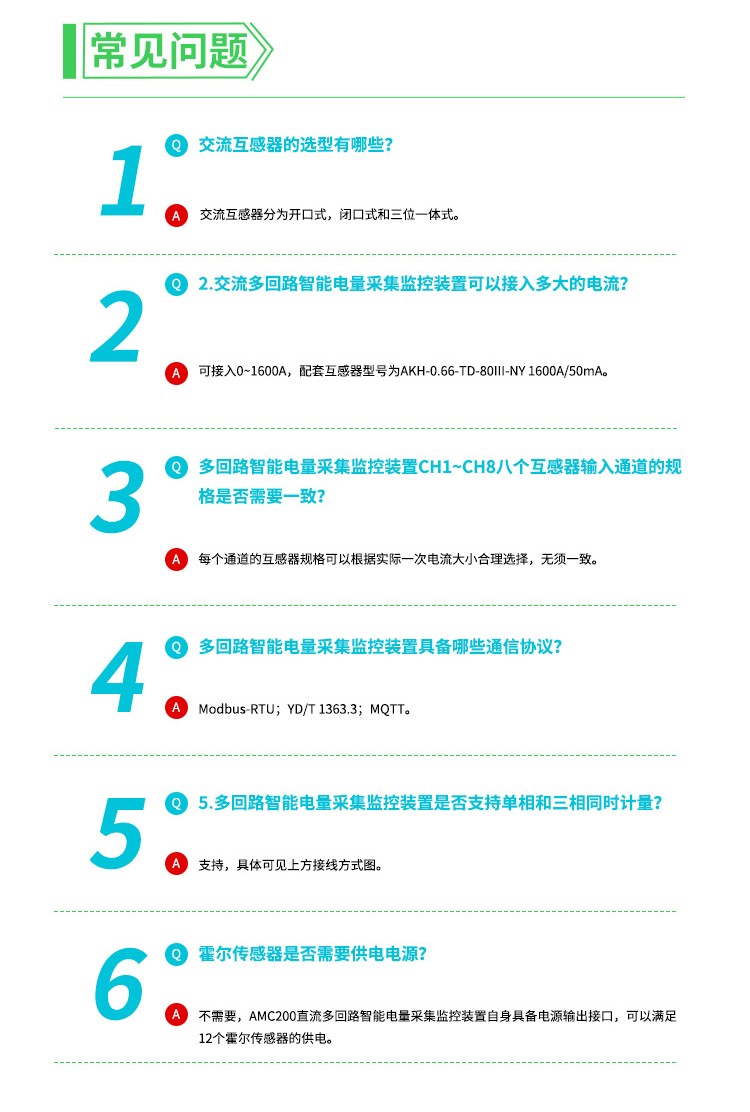 电参量测量能力全面,可灵活适配交流与直流回路。交流回路支持8个三相或24个单相回路监测,精准采集电压、电流、有功/无功功率、功率因数、四象限电能、频率及零序电流等关键参数;直流回路可监测12个单相回路(需搭配霍尔传感器),同步采集电压、电流、功率数据,兼容开口/闭口互感器、霍尔传感器,各通道独立变比,支持交直流混合回路接入。